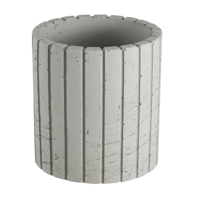 Wyjątkowy betonowy pojemnik o żłobkowanej (żebrowanej) powierzchni, która dodaje mu solidnej formy faktury i elegancji. Idealny do przechowywania większych świec, doniczek lub jako element dekoracyjny. Łączy w sobie rękodzieło z wyjątkową, przyjemną w dotyku fakturą. Dostępny w szerokiej gamie kolorów.