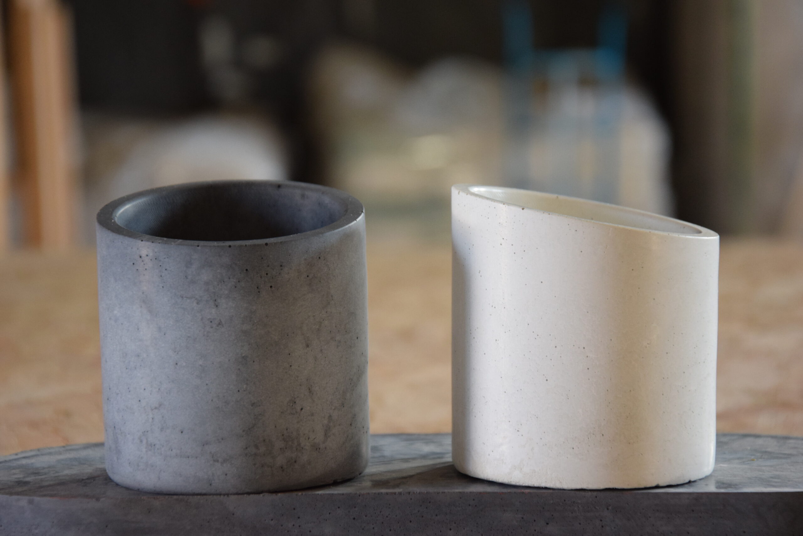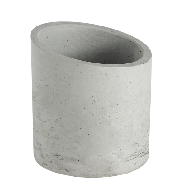 Nowoczesny betonowy pojemnik ze ściętą górną krawędzią, która nadaje mu dynamiczny, rzeźbiarski wygląd. Zaprojektowany dla osób ceniących minimalistyczne formy z odważnym akcentem. Wykonany ręcznie i dostępny w różnych kolorach, które dopasują się do każdej przestrzeni.
