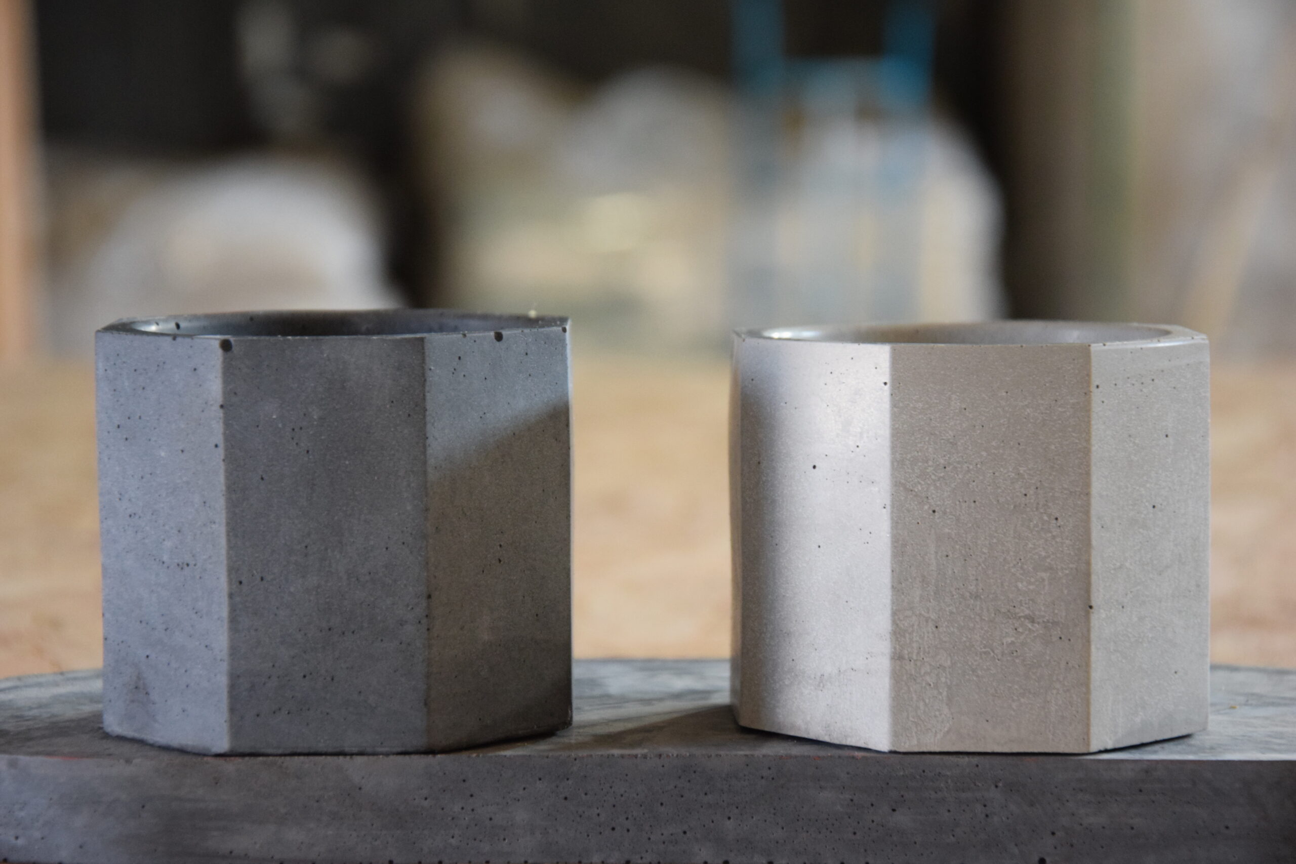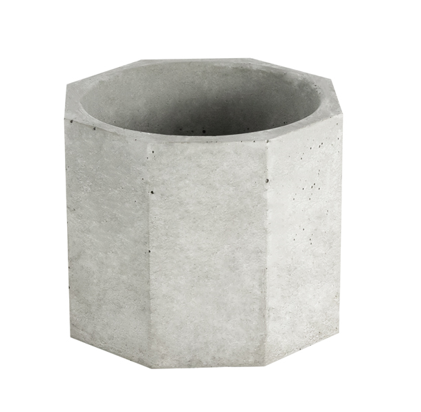 A sleek octagonal concrete container crafted from durable GRC, featuring clean lines and a minimalist design.