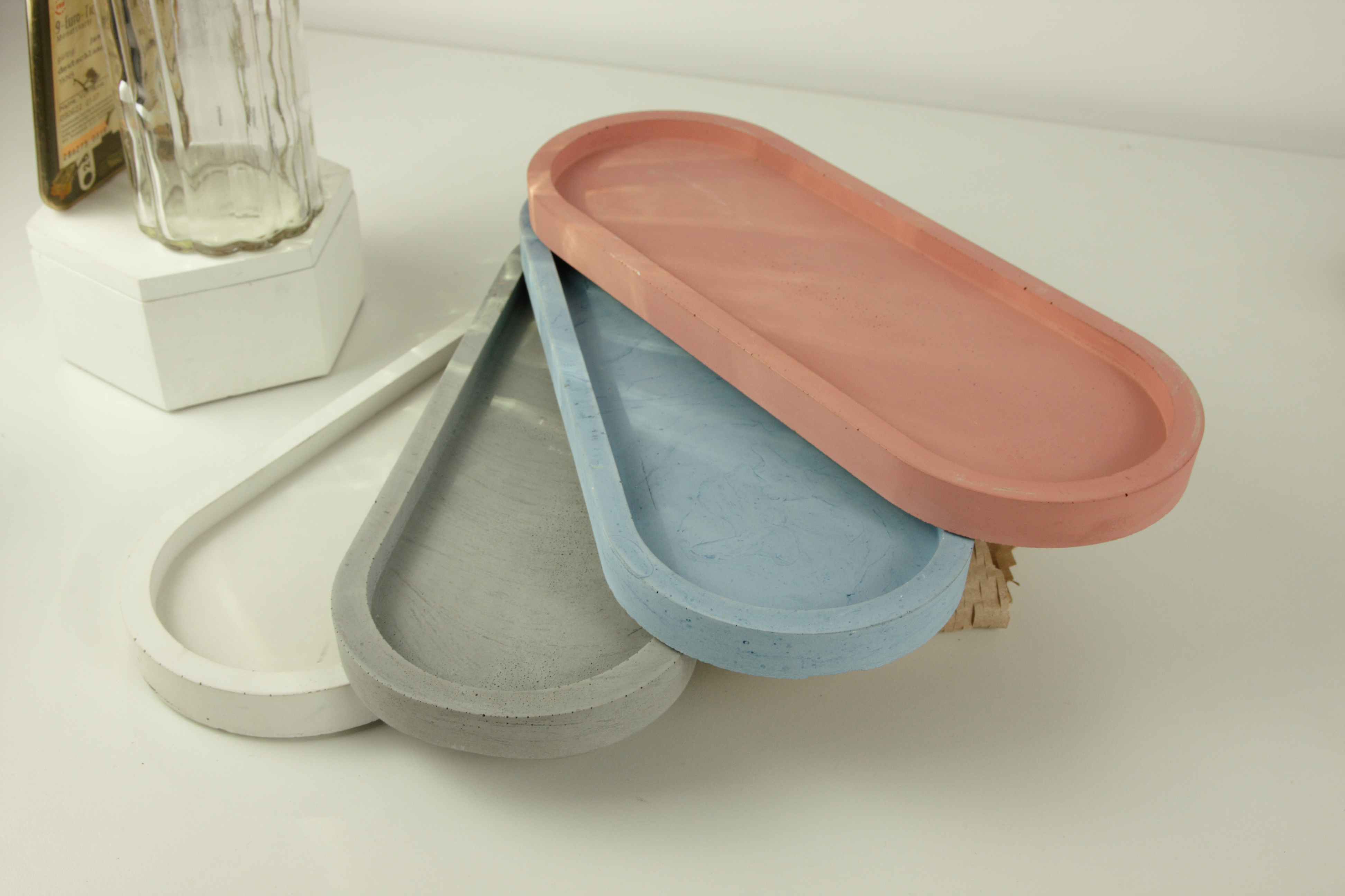 A simple yet elegant concrete tray designed to hold a single container. Its clean form and subtle presence make it a perfect accent for modern interiors. Handcrafted from durable GRC and available in a variety of colors, it pairs beautifully with our containers.