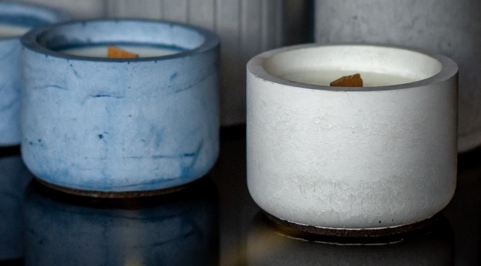 Kompaktowy i stylowy pojemnik betonowy przeznaczony na mniejsze świece, drobne rośliny lub dekoracje dekoracyjne.