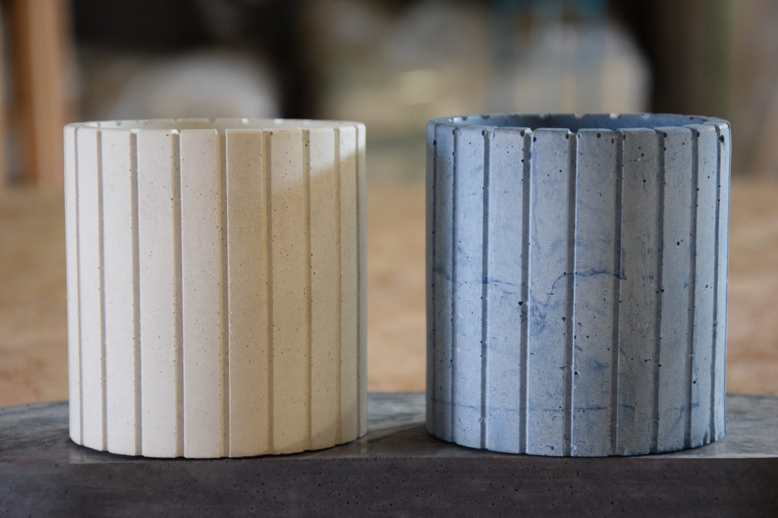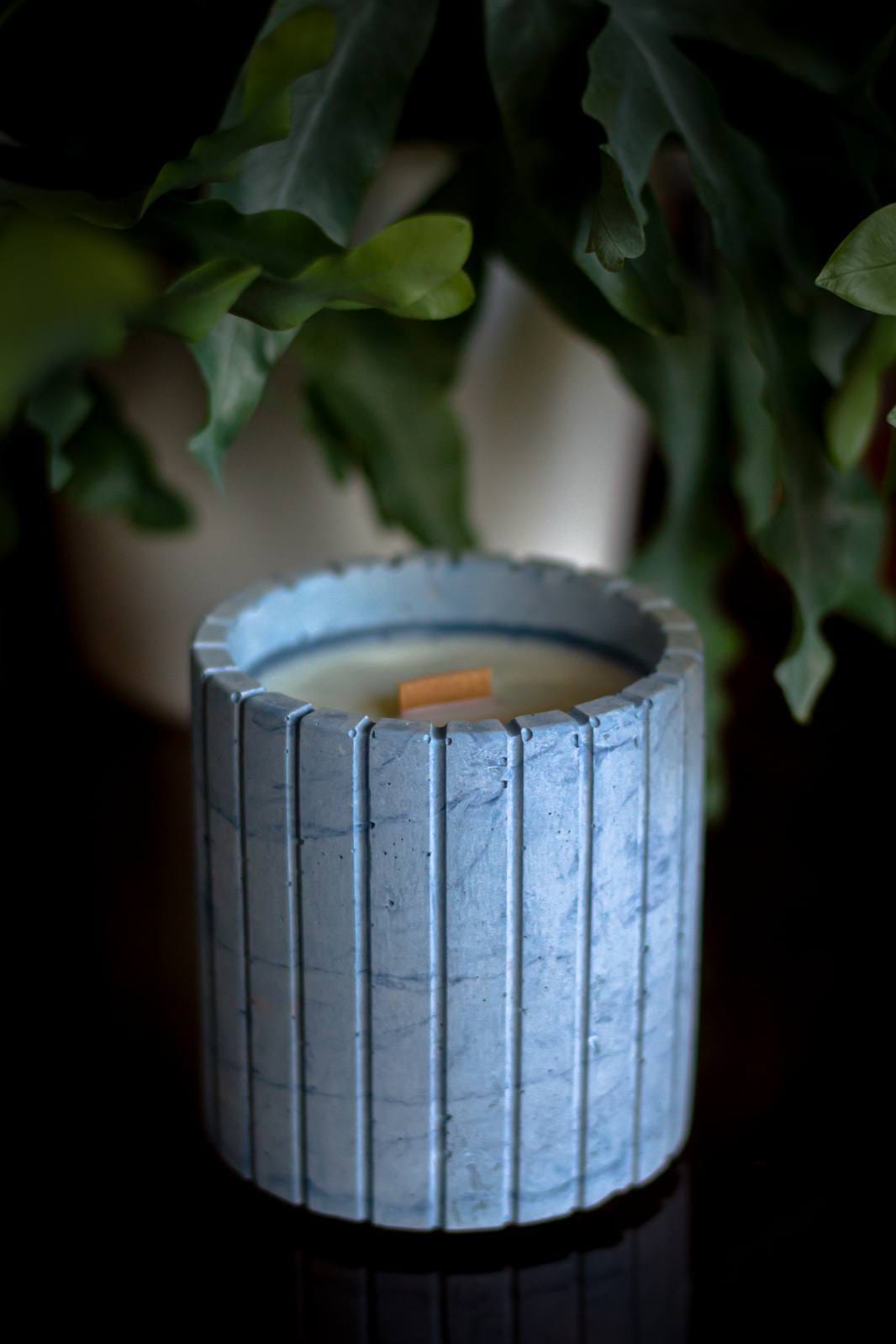 A distinctive concrete container featuring a fluted (ribbed) surface that adds texture and elegance to its solid form. Ideal for larger candles, plant pots or decorative use, It combines handcrafted quality with a unique tactile appeal. Available in a wide range of colors.